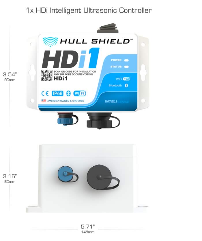 The Hull Shield® HDi Series delivers the most powerful ultrasonic antifouling system in it’s class. The HDi1 model provides intelligent control of a powerful 60W of acoustic power. Wireless connectivity and access via a mobile app provides precise control. With integrated INTELISENSE™ Remote Monitoring, you can be alerted by SMS and email in case of a power failure or other issue occurring on your vessel. Hull Shield’s HDi series will protect your boat continuously – 365 days a year. Your vessel will operate at a higher level of performance and improved fuel efficiency year-round.